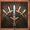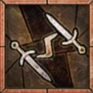 구멍 뚫기 PUNCTURE : 근거리에 칼날을 던져 27%의 피해를 입힙니다. 세번째 시전 마다 적을 2초 동안 20% 느려지게 합니다 . 치명타는 항상 느려집니다. :필러 스킬로 사용하는 기본스킬. |