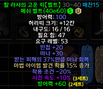 ![]() 벨트의 마법 아이템 발견 확률 10~15 변동옵션 |