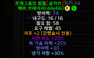 : +2 저주 스킬이 있어 강령술사에게는 더 좋은 장갑입니다.