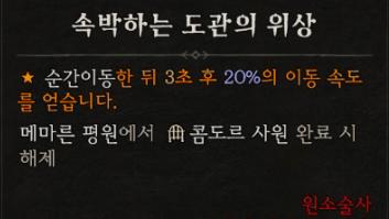 ![]() 속박하는 도관의 위상 - 순간이동한 뒤 3초 후 20%의 이동 속도를 얻습니다. (방패,투구,가슴,목걸이,장갑,신발에 가능) - 콤도르 사원 . |