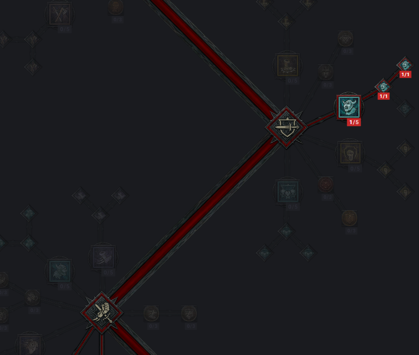 : 맹렬한 분노의 위상 ( 핵심 기술로 적을 처치하면 기본 분노 소모량의 10%를 돌려받습니다. 이 효과는 시전 1회당 한 번만 발동합니다.) - 조각난 봉우리에서 존엄한 납골당 완료 시 해제.
