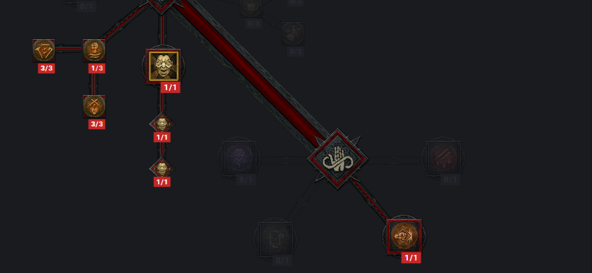 : 맹렬한 분노의 위상 ( 핵심 기술로 적을 처치하면 기본 분노 소모량의 10%를 돌려받습니다. 이 효과는 시전 1회당 한 번만 발동합니다.) - 조각난 봉우리에서 존엄한 납골당 완료 시 해제.