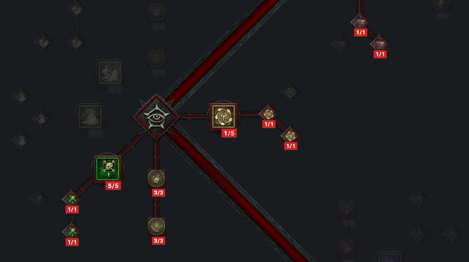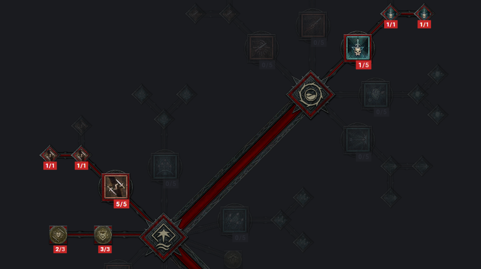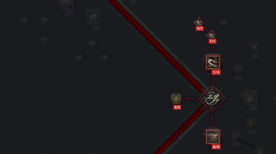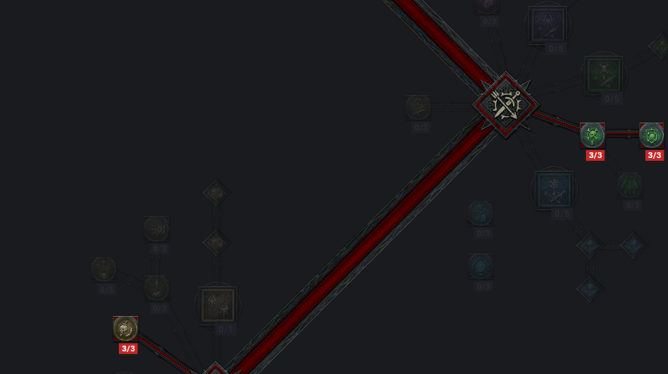 2) 발파덫 사냥꾼의 위상 : 행운의 적중: 자신의 덫 기술의 영향을 받는 적에게 직접 피해를 주면 최대 30% 확률로 대상이 3초 동안 취약해집니다. - 조각난 봉우리에서 코르 발라르 누벽 완료 시 해제.