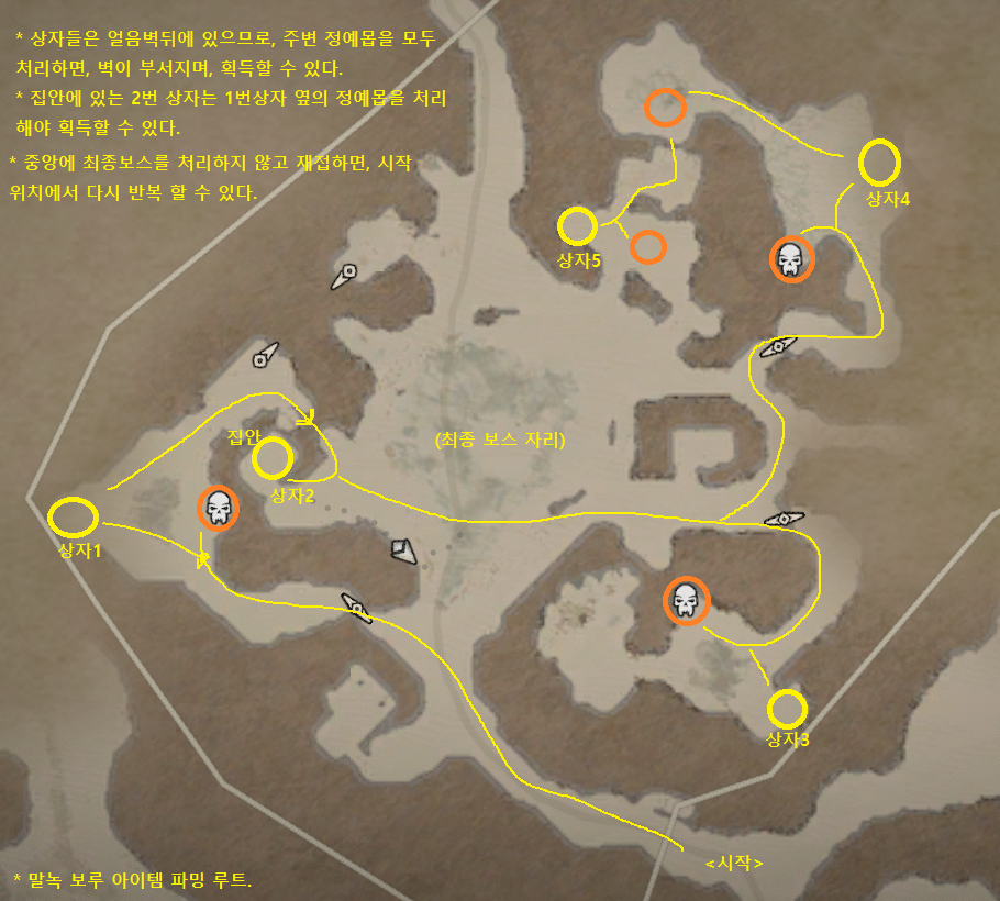 : 말녹 보루 에서 장비 파밍 루트. (정중앙에 팝업되는 보스를 잡지 않고 반복)
