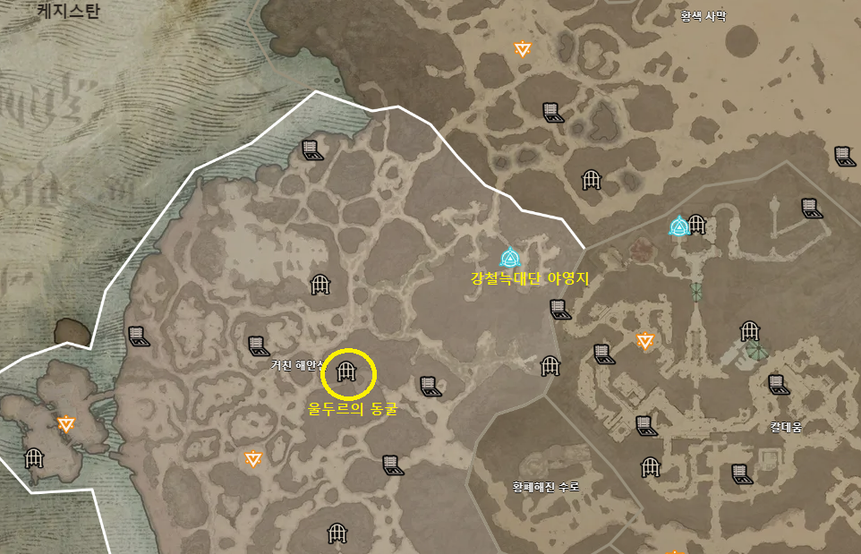 3. 45레벨까지는 케지스탄(45+레벨 지역)에 있는 울두르의 동굴에서 올립니다. 케지스탄 강철늑대단 야영지에서 7시방향에 있습니다.