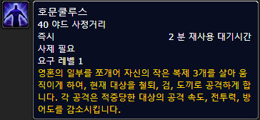 - 속박된 도시의 예언 획득하여 습득. - 붉은마루 산맥의 검은바위부족 흑마술사 정예몹이 드랍. ( 기술을 습득하려면, 두가지의 명상버프 필요 ) |