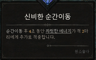 < 변경후 - 신비한 순간이동 > 순간이동으로 주는 피해가 500% 증가합니다. 또한 적중한 적 하나당 짜릿한 에너지가 하나씩, 최대 3개까지 생성됩니다. |