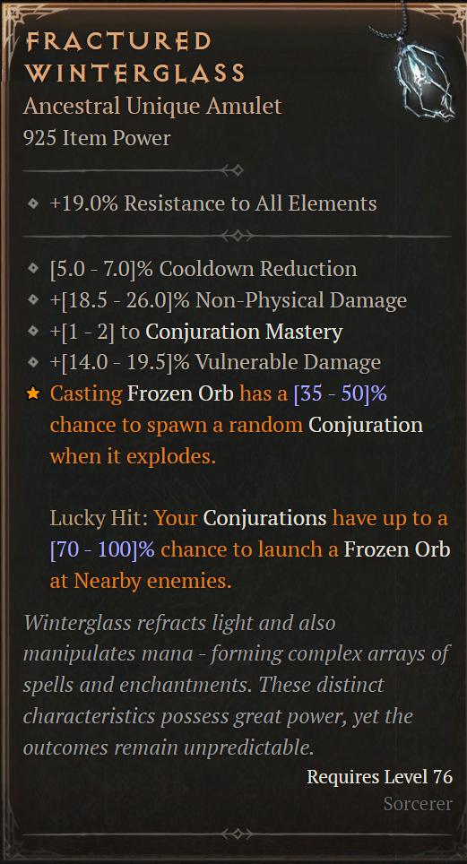 - 얼음보주 빌드는 신규 추가될 고유 목걸이인 조각난 겨울유리(번역명은 바뀔수 있음)가 필수 입니다.