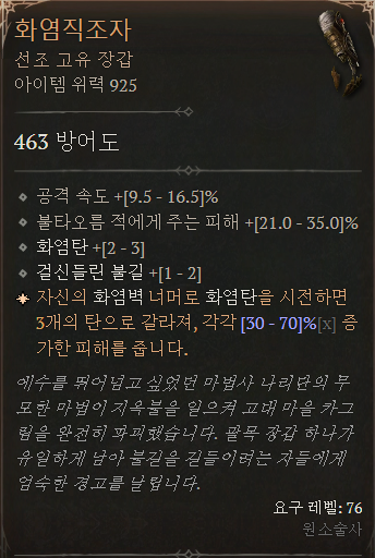 목걸이 - 적응의 위상 [유리대포등급, 걸신들린불길등급, 끝없는장작등급] [담금질 - 근거리피해, 화염보호막지속시간]