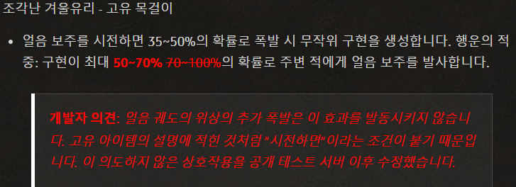 공지에서는 얼음궤도 위상의 폭발만 언급되고 있어서, 얼음보주 마법부여에의해 발사되는 얼음보주는 목걸이 구현숙련이 발동될 수도 있지 않을까 기대를 해보지만, 정확한건 시즌4가 열려야 확인이 가능할 것 같네요.