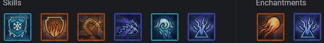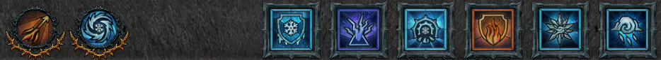 중심점 - 얼어붙은 동토 위상 [공격속도, 극대화확률, 재사용대기시간 감소] [담금질 - 얼음칼날 피해 , 행운의적중:암흑피해]
