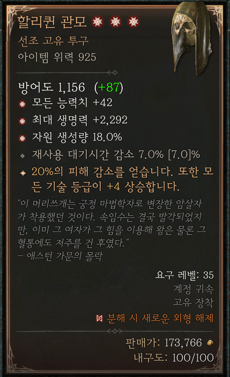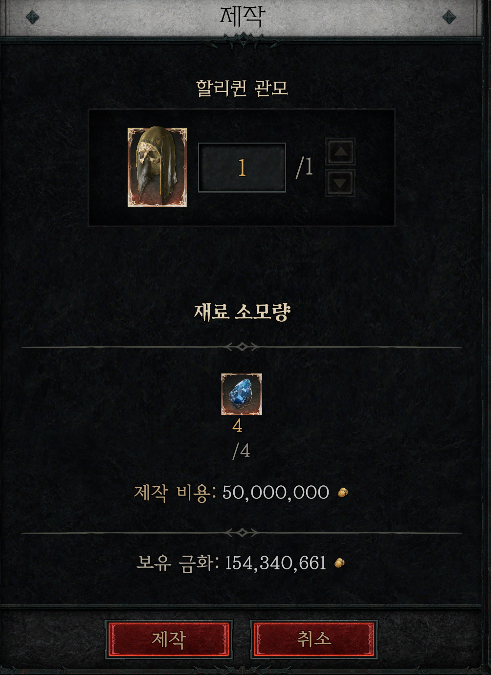 연금술사에게 찾아가서 원하는 우버 아이템으로 제작을 합니다. 저는 샤코(할리퀸 관모)를 만들었는데, 비용은 5천골드 입니다.