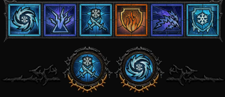 ![]() 구현숙련 중첩을 더 높이기 위해 얼음칼날 마부를 사용한 세팅. 걸신들린불길 효과를 받기위해서 보통 소환된 히드라까지 스킬을 찍어 사용한다. |