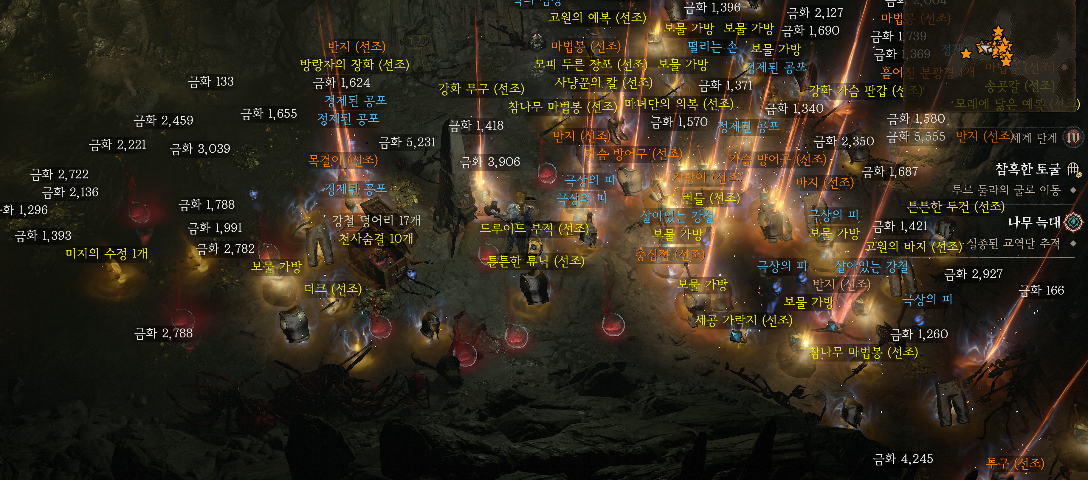 - 탐욕의 신단이면서, 저주받은 신단일 경우, 보물 고블린이 계속 나오는데, 놓치지 않고 빠르게 잡으면 매우 많은 고블린을 처치 할 수 있습니다. (10마리~15마리)