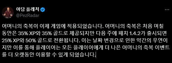 1. 경험치 & 골드 버프 : 현재는 경험치와 골드 버프가 모두 35%로 적용중이지만, 몇일 안에 경험치 20% 골드 50%로 조정될 것이라고 개발진 아담 플래처가 밝혔습니다. (원문 출처 링크)