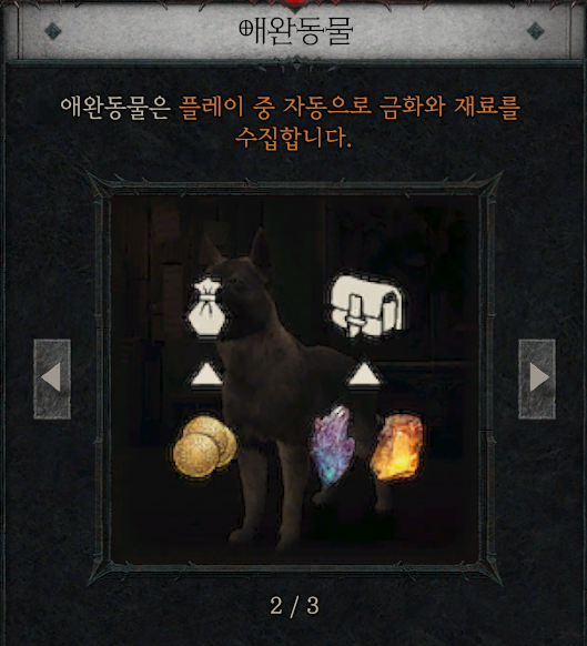 - 애완동물은 기능이 있는데요. 재료 아이템 및 골드를 돌아다니면서 대신 먹어줍니다. 너무 편하네요.