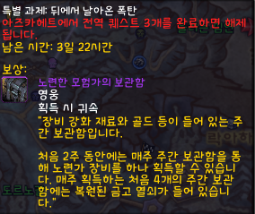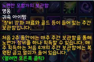 - 노련한 모험가의 보관함 : 지역 특별과제 전역퀘 보상.