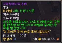 - 구렁 탐험가의 은혜는 고유 아이템이므로, 한개를 가방에 가지고 있는 상태에서 하나가 더 나오면 획득이 불가하므로, 가방에 있는걸 사용한 후에, 다시 루팅하면 획득 할 수 있습니다.