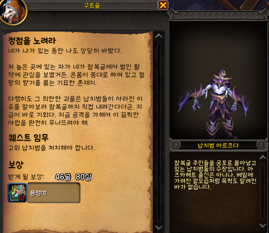 4. 다음 퀘스트는 정점을 노려라 입니다. 고위 납치범을 처치하라는 퀘스트인데, 건물안의 납치범 아르즈다를 처리하면 완료됩니다.