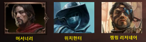 : 9:35 몽크 , 11:32 워리어 , 13:52 레인저 , 15:35 머서너리 , 16:55 위치 , 18:52 소서리스 .