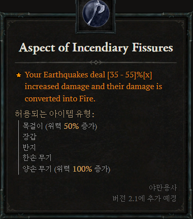 [야만용사 위상]![]() 지진의 피해가 [35~55]%[x] 증가하고, 피해가 화염으로 전환됩니다. |