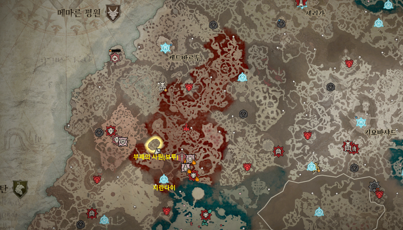 - 부패의 사원 위치. (메마른평원 지란다이 위쪽 보루)