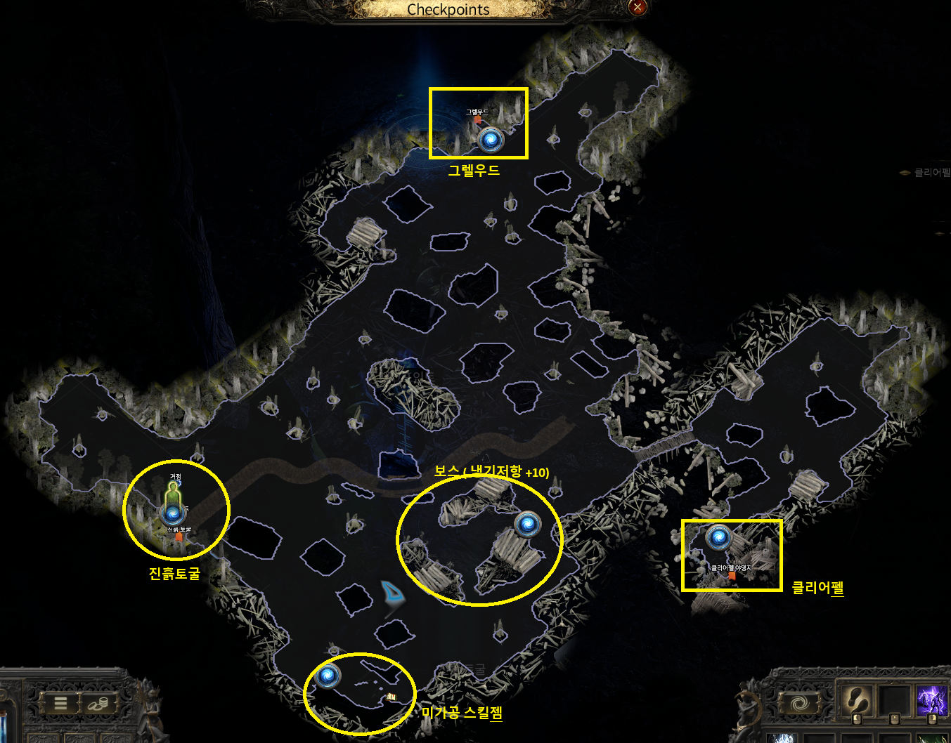 - 냉기저항을 올려주는 썩은 무리의 베이라 (보스) 가 있습니다. (거점에서 항상 12시 방향에 있습니다.)