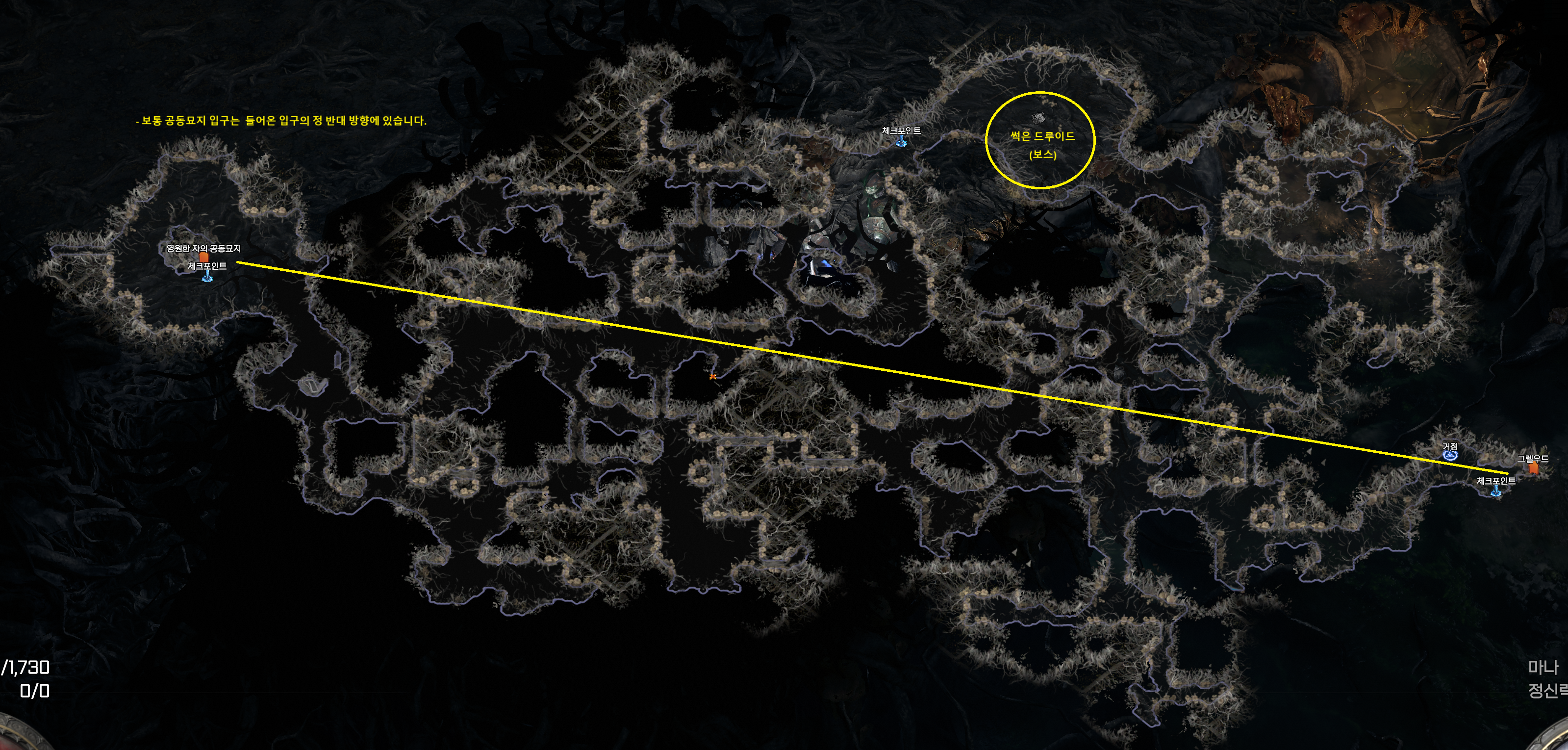- 동굴들어온 입구는 보통 아래쪽이나 오른쪽에 있으며, 공동묘지 입구는 9시~11시 방향에 있습니다.