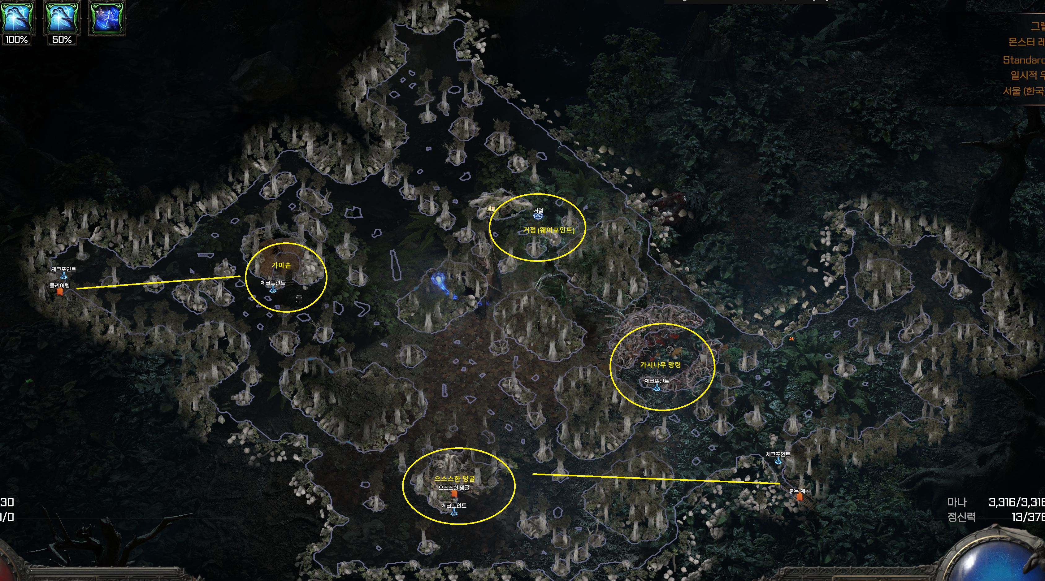 - 가시나무망령(보스) 몹이 있습니다. 미가공 스킬젬 1레벨 드랍.