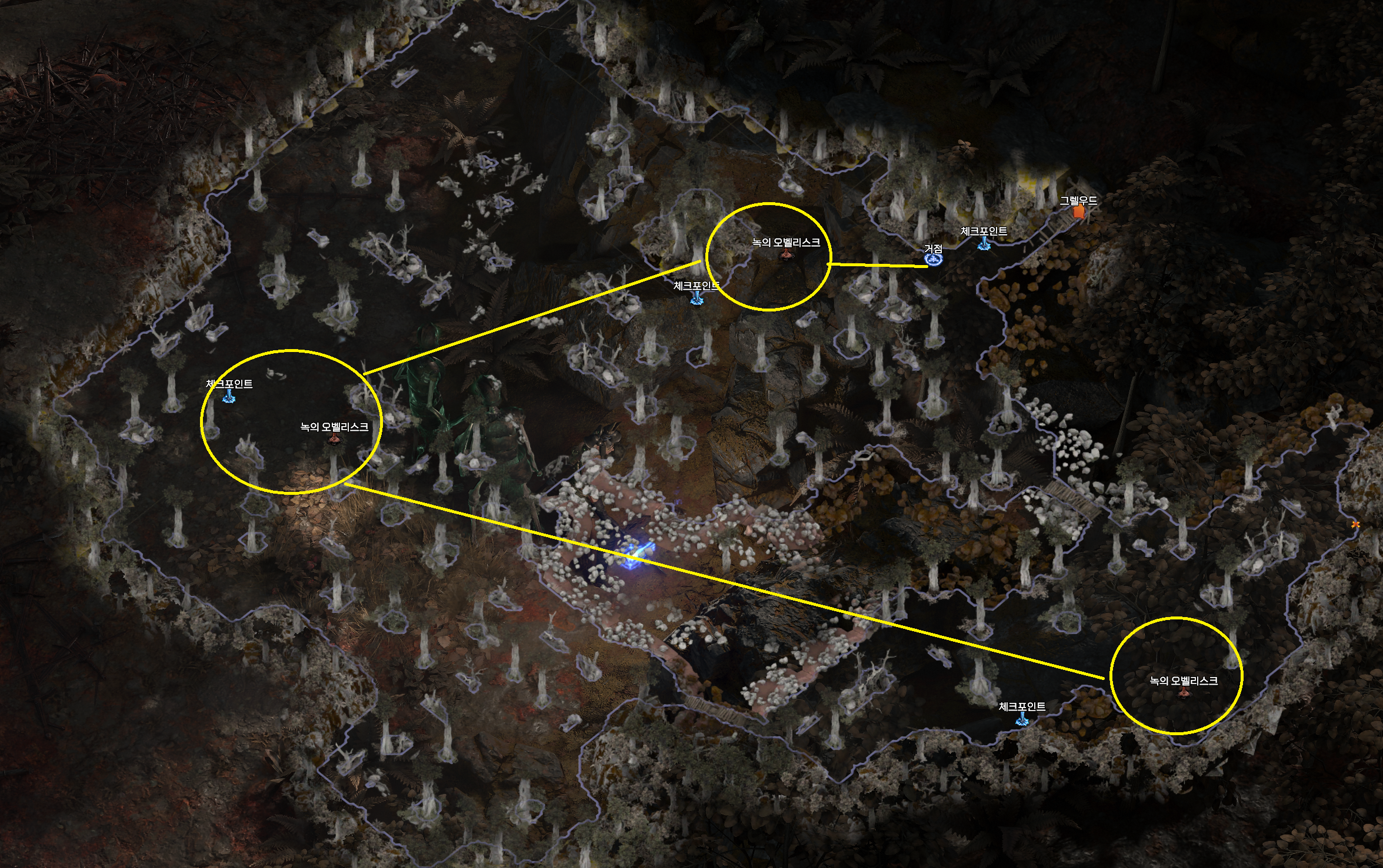 POE2 (Path Of Exile 2)/POE2 정보. [POE2: 지도정보] " 액트1 - 붉은 계곡 길찾기,패턴, 지역 정보. by 먀아 2025. 4. 1. 반응형 - 액트1 붉은 계곡 지역 입니다. - 녹의 오벨리스크 3곳을 찾아 퀘스트아이템 3개를 획득하는 것이 목표인 맵입니다. - 녹의 오벨리스크 위치는 매번 바뀝니다. 약간씩 돌려진다고 보면 될 것 같네요. - 마지막 오벨리스크에서 녹왕(보스)이 팝업 됩니다. - 붉은 계곡 지역 지도. - 보통 거점에서 시계방향이나 시계 반대 방향으로 돌면 차례로 찾을 수 있습니다. - 붉은 계곡 지도 - 반응형 공유하기 게시글 관리 My Favorite 저작자표시 비영리 변경금지 (새창열림) 관련글 [POE2: 지도정보] " 액트1 - 집정관의 능묘 지역 지도, 패턴, 길찾기 정보. [POE2: 지도정보] " 액트1 - 영원한 자의 공동묘지 길찾기, 패턴, 지역 정보. [POE2: 지도정보] " 액트1 - 그렐우드 & 으스스한 덩굴 지역 지도,패턴, 길찾기 정보. [POE2 : 지도정보] " 액트1 - 클리어펠 & 진흙 토굴 지도, 패턴, 지역 길찾기 정보.