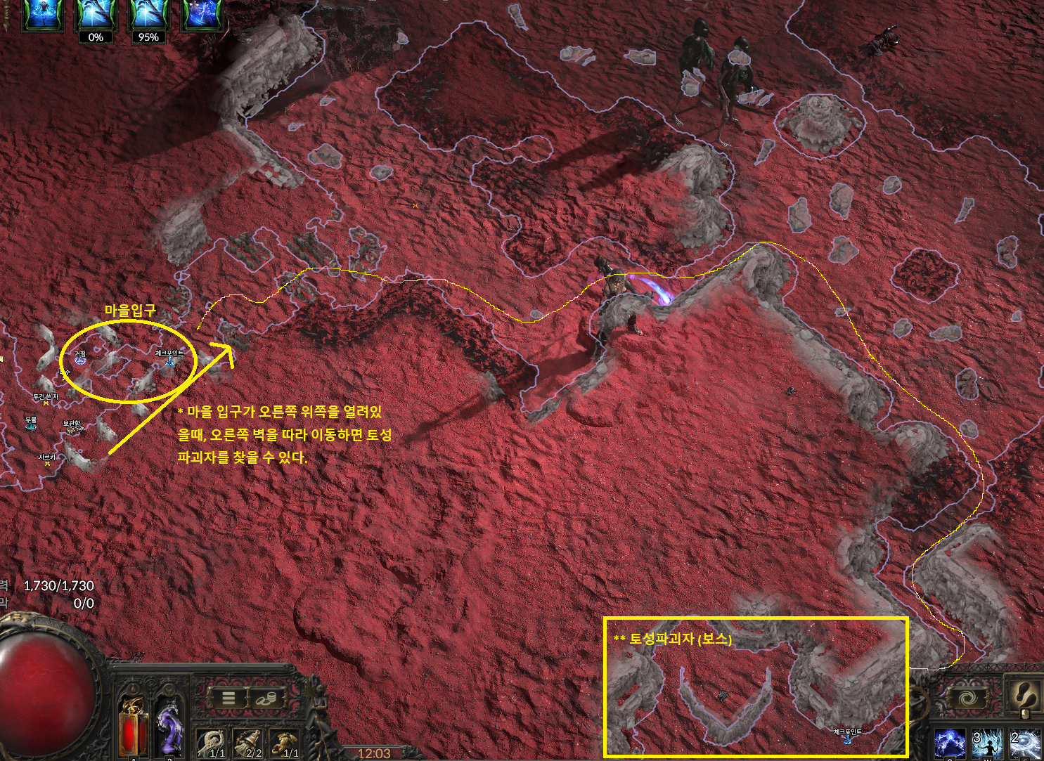 - 마을의 모양에 따라 보스 위치 방향이 달라집니다.
