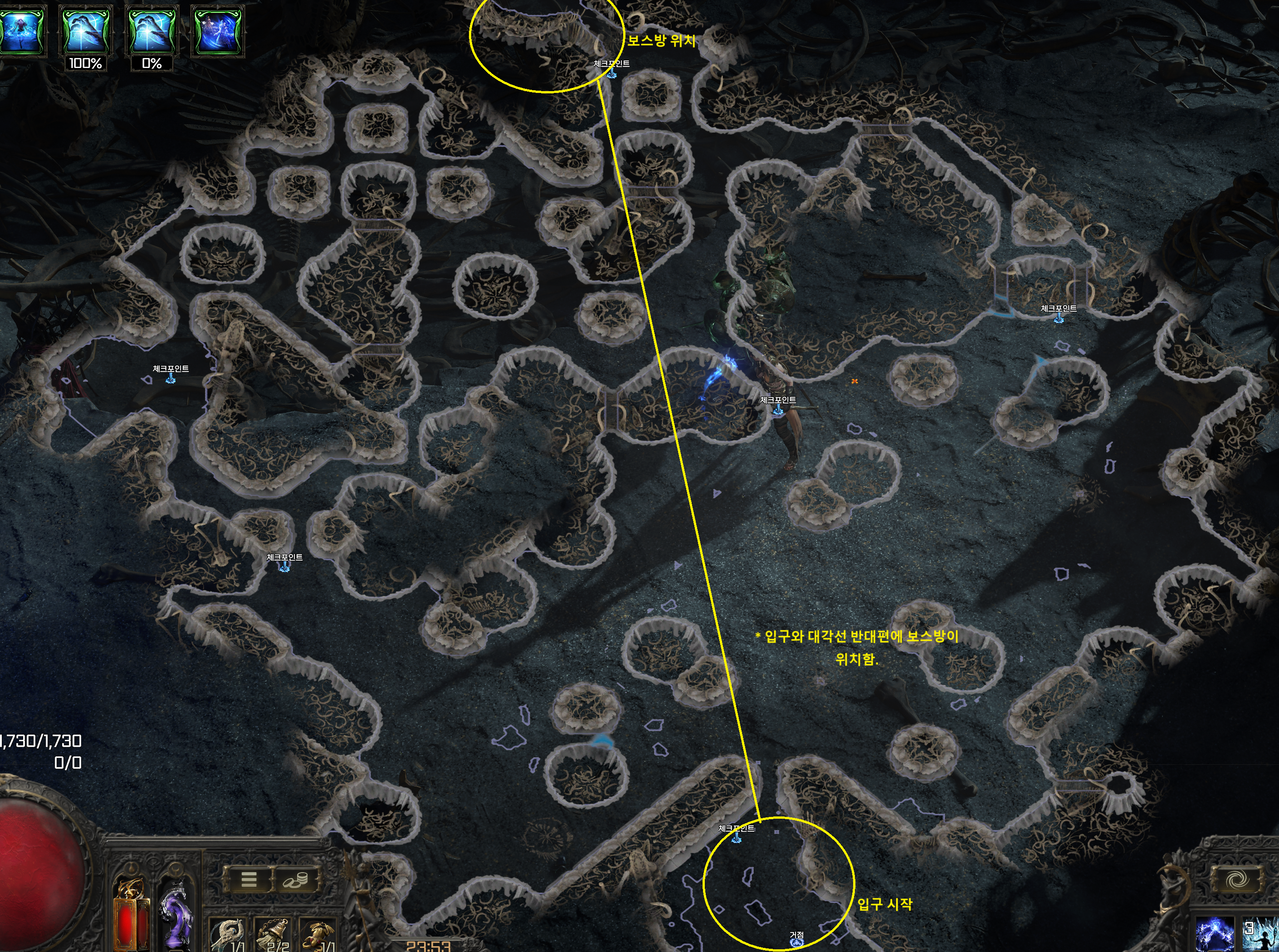 : 고대의 군상 에크밥 (보스) 방의 위치는 항상 입구와 대각선 반대편 일직선 지역에 위치한다.