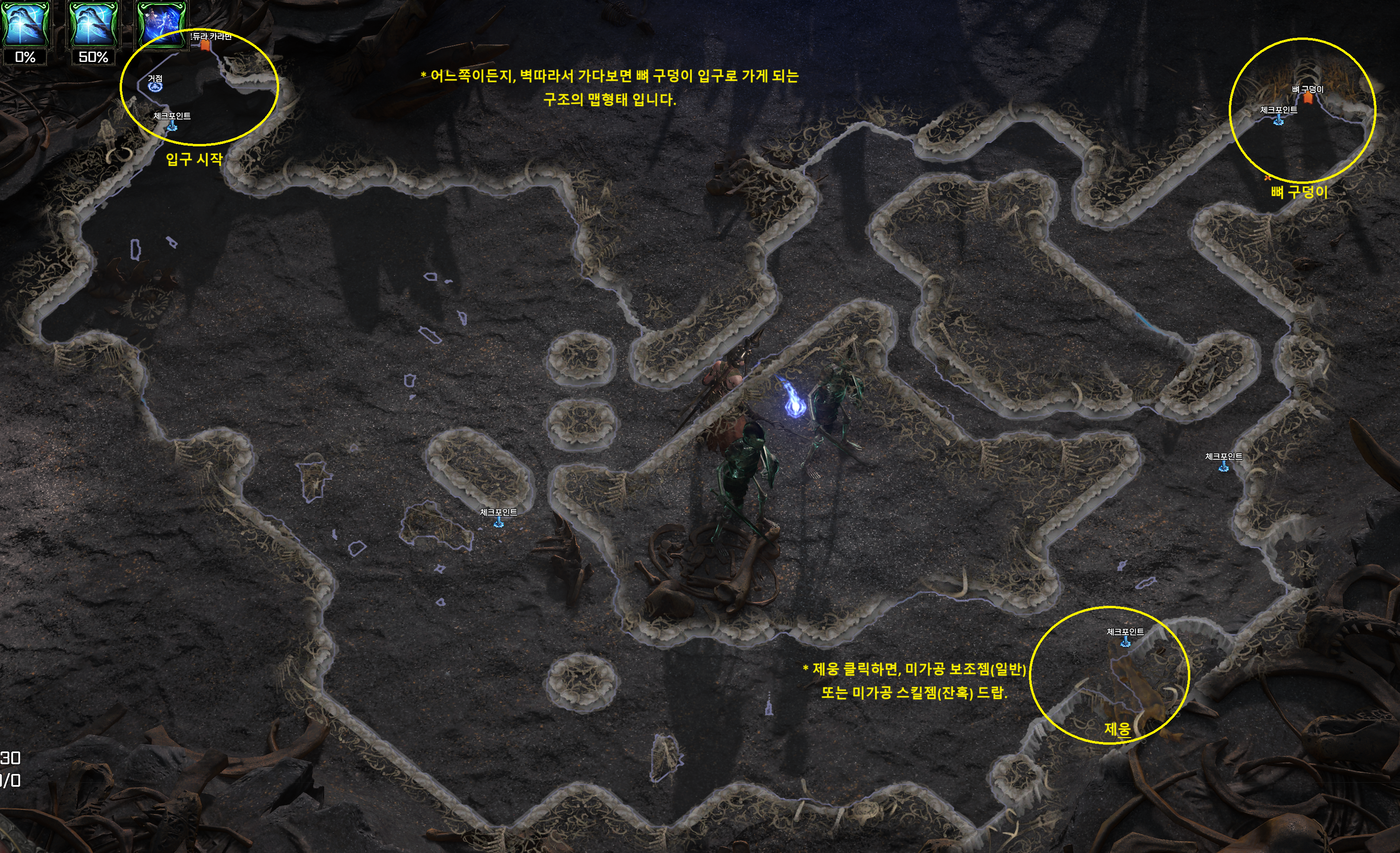 - 일정한 패턴이 없는 맵지역으로, 벽을 따라 이동하는 것이 유일한 방법인 맵입니다.