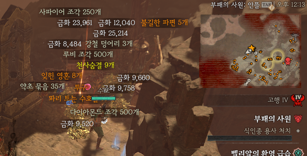 : 지옥물결 여제를 잡으면, 보상상자가 나오기 때문에, 여기서도 7-8개 얻을 수 있습니다.