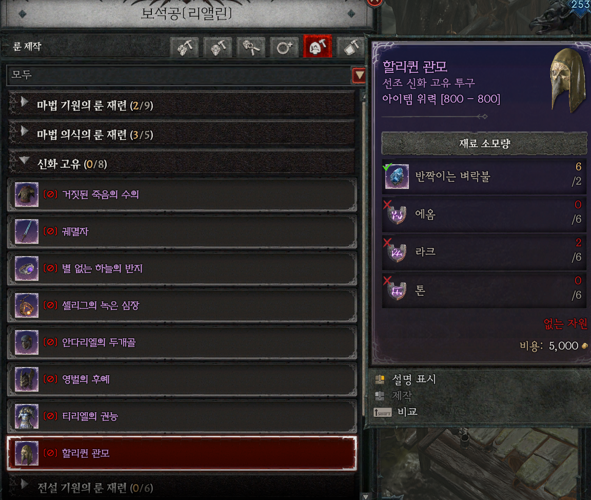 (서약의 두루마리 59개 구입시 환영의재 1만5천개 필요)