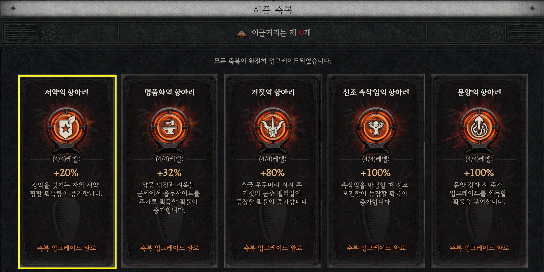 (서약의 두루마리는 시즌퀘스트를 완료한 케릭터로 구입 할 수 있습니다.)