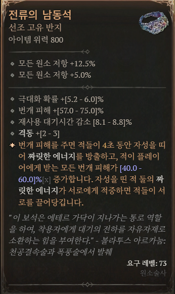 - 원소술사 [ 전류의 남동석 Galvanic Azurite ] ![]() 드랍 보스 : 안다리엘, 증오의 사도. |
