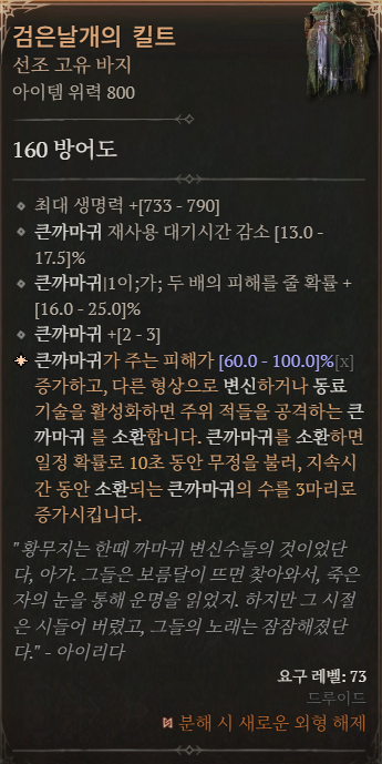 | 직업공통 | 명멸걸음, 티볼트의 의지, 크팔의 부식된 인장, 영혼 낙인, 로크란의 영물, |