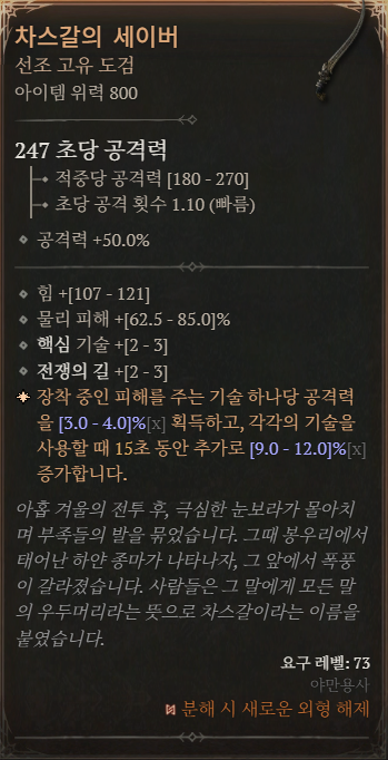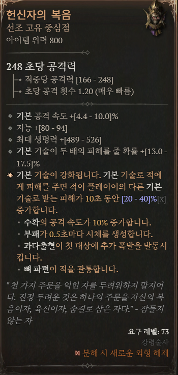 : 혼돈 아이템의 고유 능력은 일반 능력보다 20% 더 높게 적용되며, 녹색 글씨로 표시됩니다.
