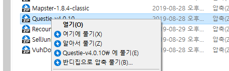 또는 윈도우 검색기능에 Interface 이런식으로 폴더를 직접 찾으셔도 됩니다. 인터페이스 폴더를 열어보면 안에 " AddOns " 라는 폴더가 하나 더 있습니다. 그 폴더를 열어보면, 애드온이 하나도 설치가 안된경우는 텅 비어있는데요. 여기에 다운받은 애드온 압축파일을 붙여넣기 하세요. 그리고 압축파일을 우클릭하시고, 여기에 풀기를 클릭하시면 해당 폴더에 압축이 풀립니다.