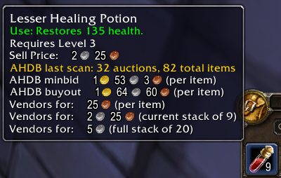 아이템이 경매장에서 거래되고 있는 가격을 알려주는 애드온 입니다.