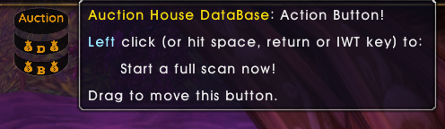 - 위 스크린샷 같은 버튼이 여관근처나 대도시에 가면 생성되는데요. 화면 중앙 상단에 생깁니다. 애드온 설치하시고, 최초 경매장에 들러서 경매인 클릭하셔서 경매창 열어주시고, D 버튼을 한번 클릭해주시면 데이터베이스를 수집한 후에, 경매장 가격과 상점판매가격을 보여줍니다.