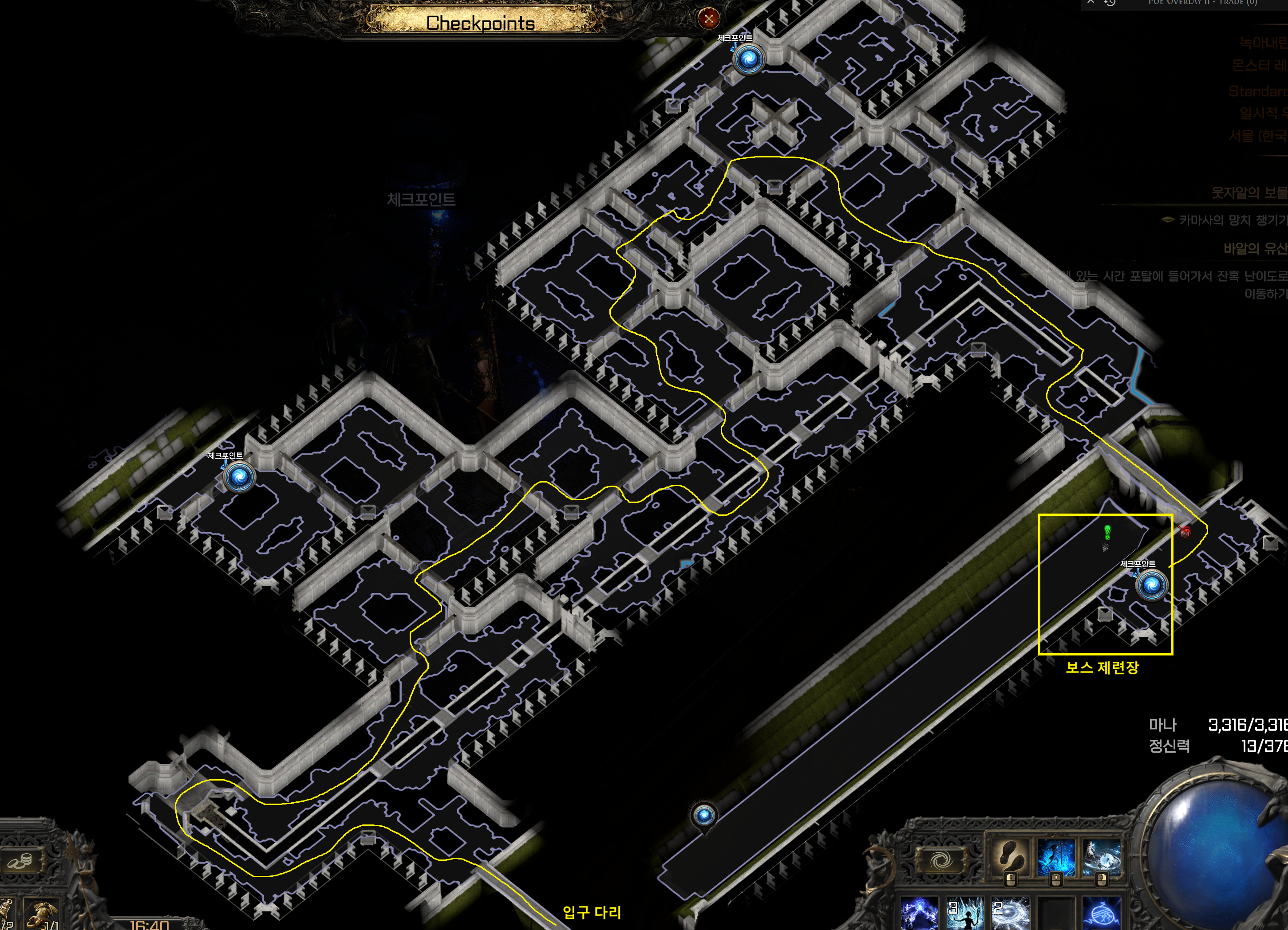 [POE2: 지도정보] " 액트3 - 물에 잠긴 도시 & 녹아내린 금고 지역 지도, 패턴, 길찾기 정보.